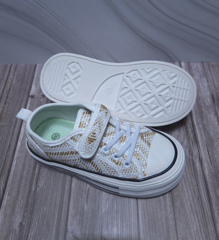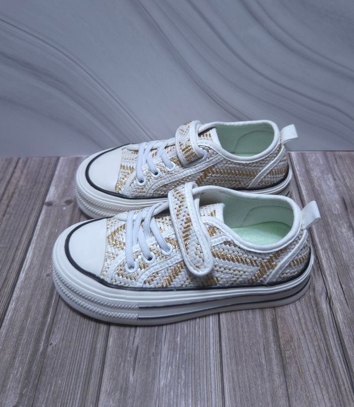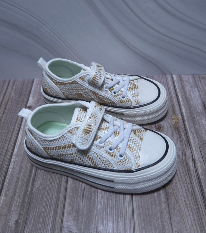 Baskets Fille Blanches & Dorées - Style Tweed Chic - Neuves Taille 31 - photo numéro 1