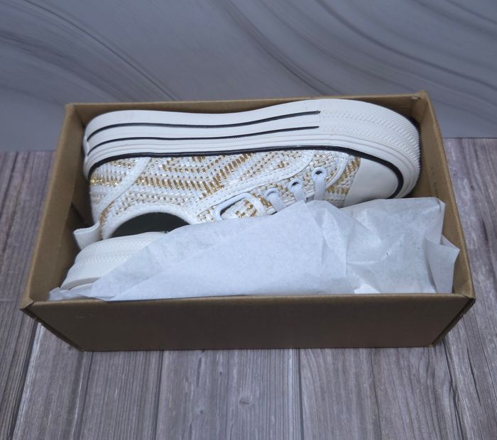 Baskets Fille Blanches & Dorées - Style Tweed Chic - Neuves Taille 31 - photo numéro 5