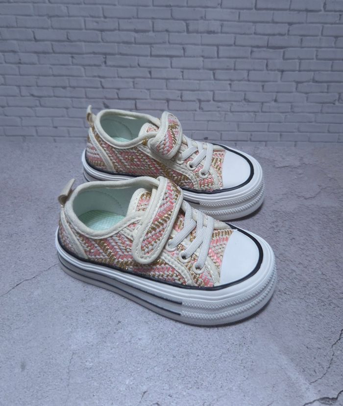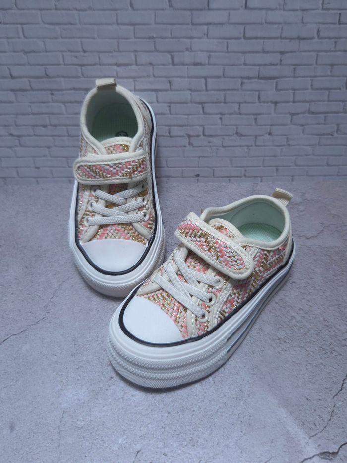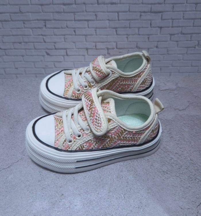 Baskets Fille Rose & Dorées - Style Tweed Chic - Neuves Taille 26 - photo numéro 1