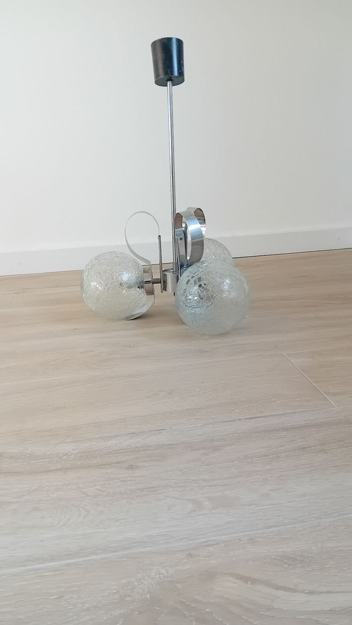 Lustre en verre et chrome vintage