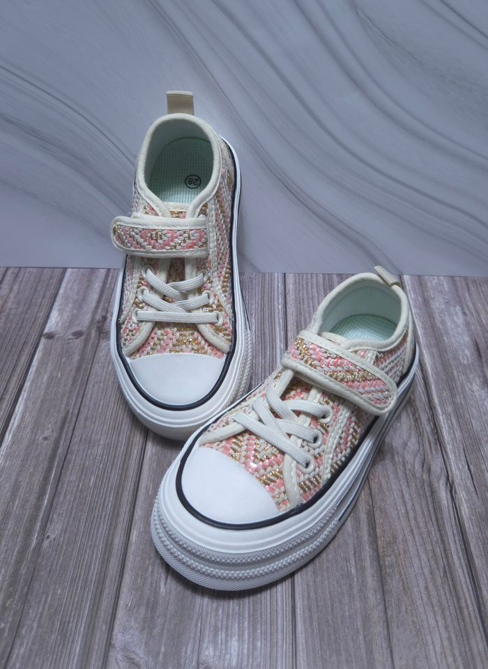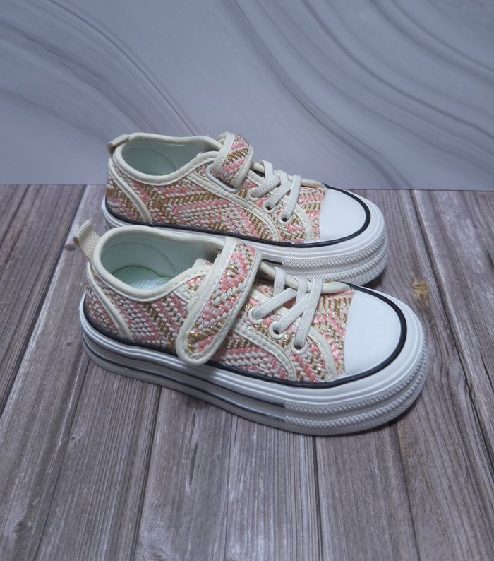 Baskets Fille Rose & Dorées - Style Tweed Chic - Neuves Taille 29 - photo numéro 1