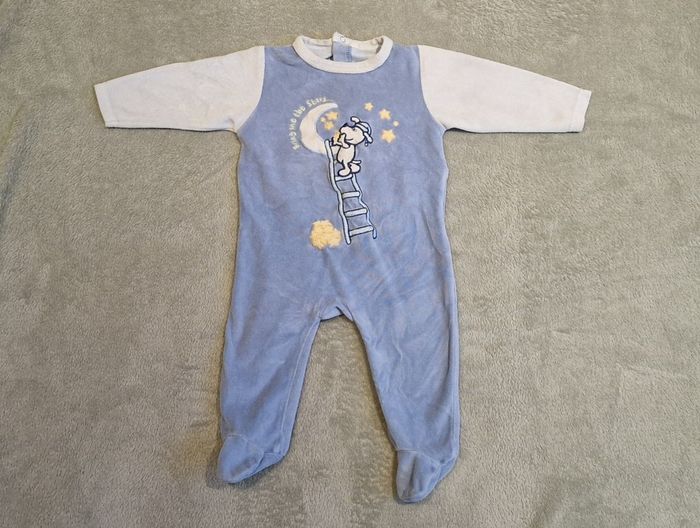 Pyjama velours bleu Tex 9 mois - photo numéro 1