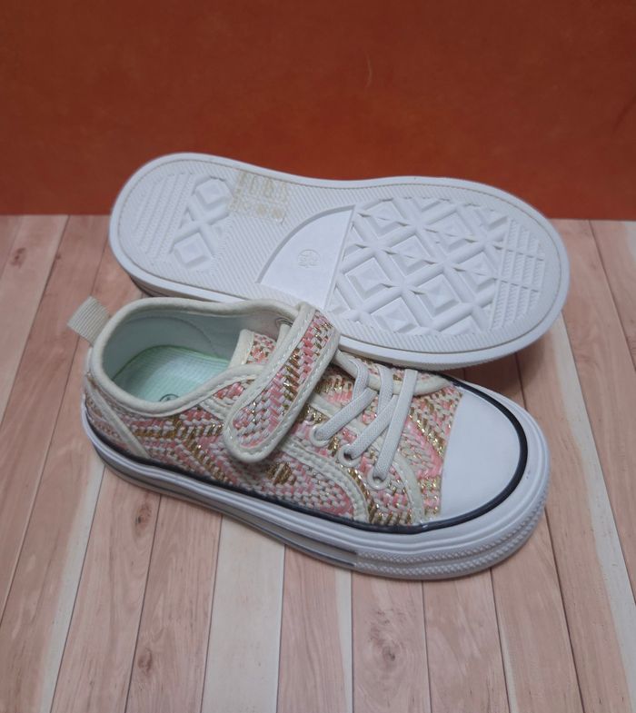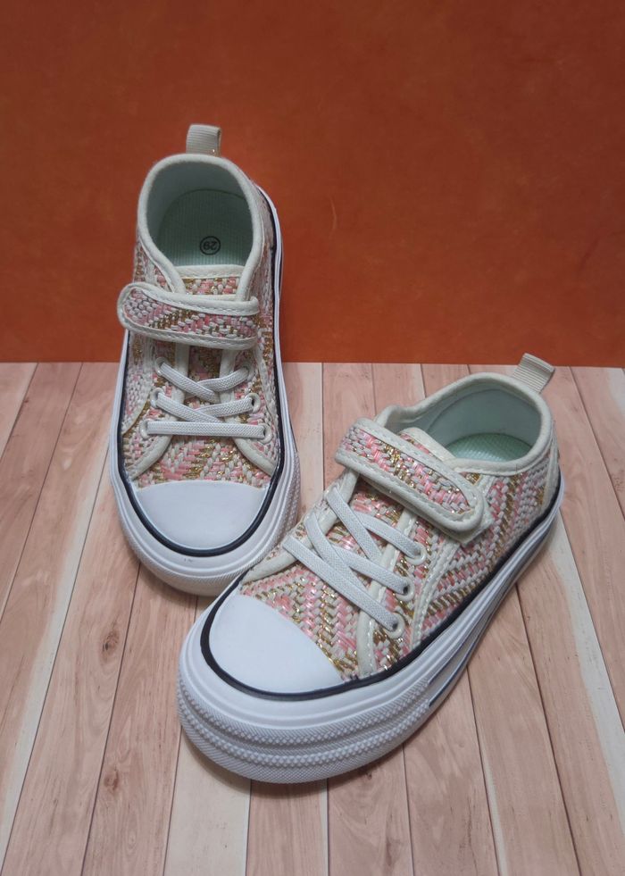 Baskets Fille Rose & Dorées - Style Tweed Chic - Neuves Taille 30 - photo numéro 1