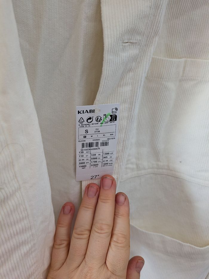 Surchemise en velours côtelé KiabiJe vends cette superbe surchemise (ou veste légère) en velours côtelé de la marque Kiabi. Sa couleur blanc cassé / crème est parfaite pour toutes les saisons et facile à assortir. ✨ Caractéristiques : Marque : Kiabi Taill