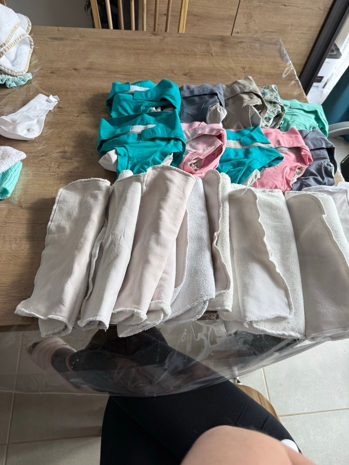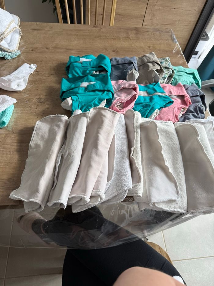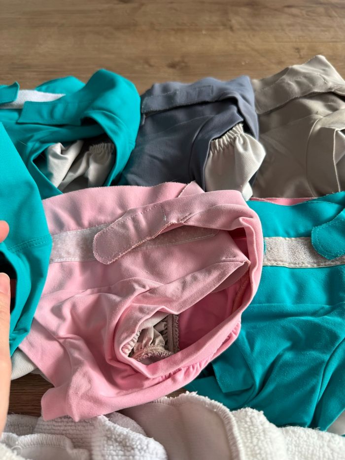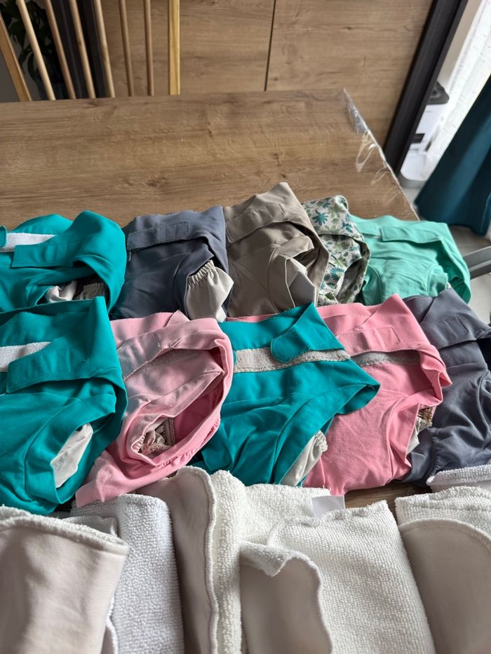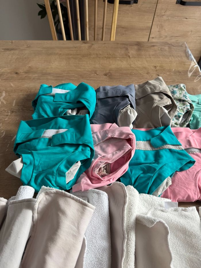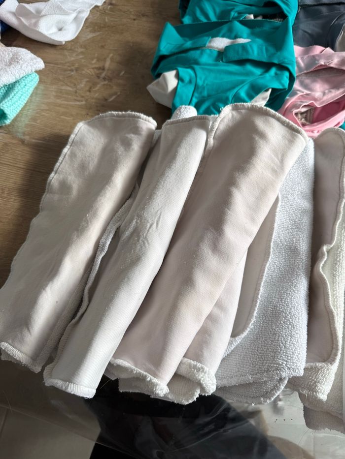 Bonjour je vend un lot de couche hamac taille L peuvent être vendu par petit lot dans mon dressing Élastique un peu abîmer du au scratch dans la machine mes sert encore bien entre les cuisse Petit bouloche possible Et sur une une petite tache d ancre Insert en très bonne état mes on servi donc pas neuf peuvent avoir des petits trace Insert jour et nuit