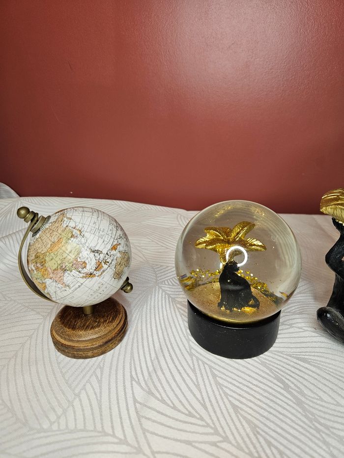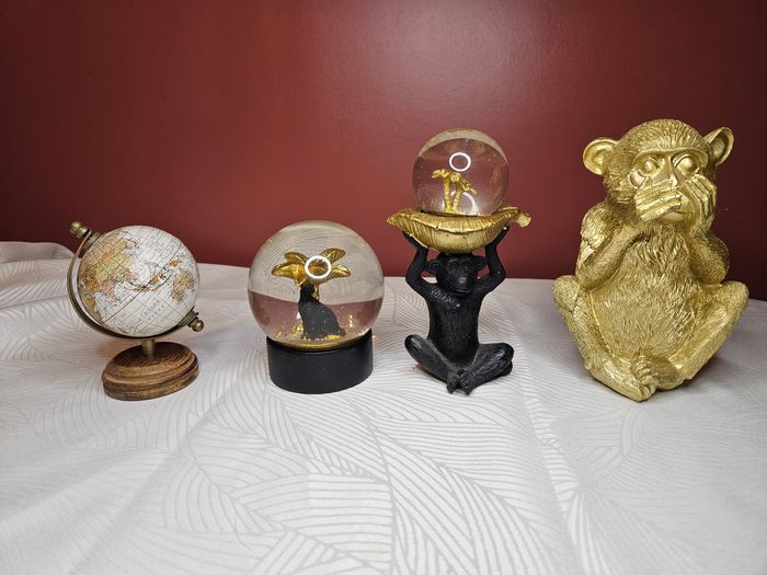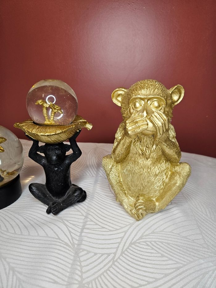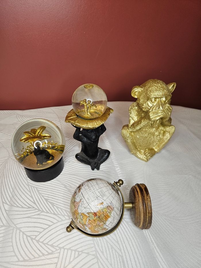 Lot de décoration 1 boule a neige avec léopard 1 singe avec boule a neige 1 singe doré 1 globe