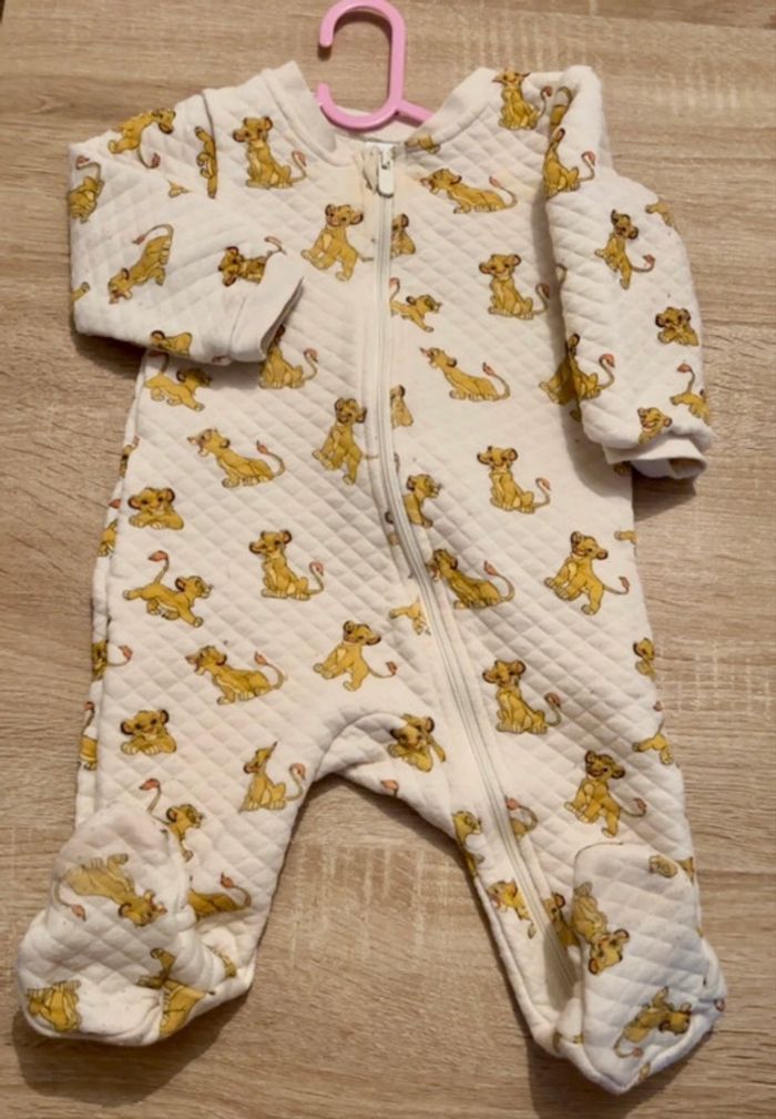 2 pyjamas bébé en très bon état, parfaits pour garder bébé bien au chaud. Détails : • Pyjamas une pièce avec fermeture zippée • Tissus doux et confortables • 1 pyjama blanc matelassé à motifs roi lion Simba • 1 pyjama vert à motifs Grinch de chez Primark Idéal pour la nuit ou les journées cocooning