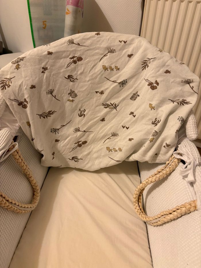Vends beau petit couffin avec housse déhoussable et avec un drap housse L’ombrelle peut s’enlever également Utilisé de la naissance de mon fils jusqu’à ses 3 mois