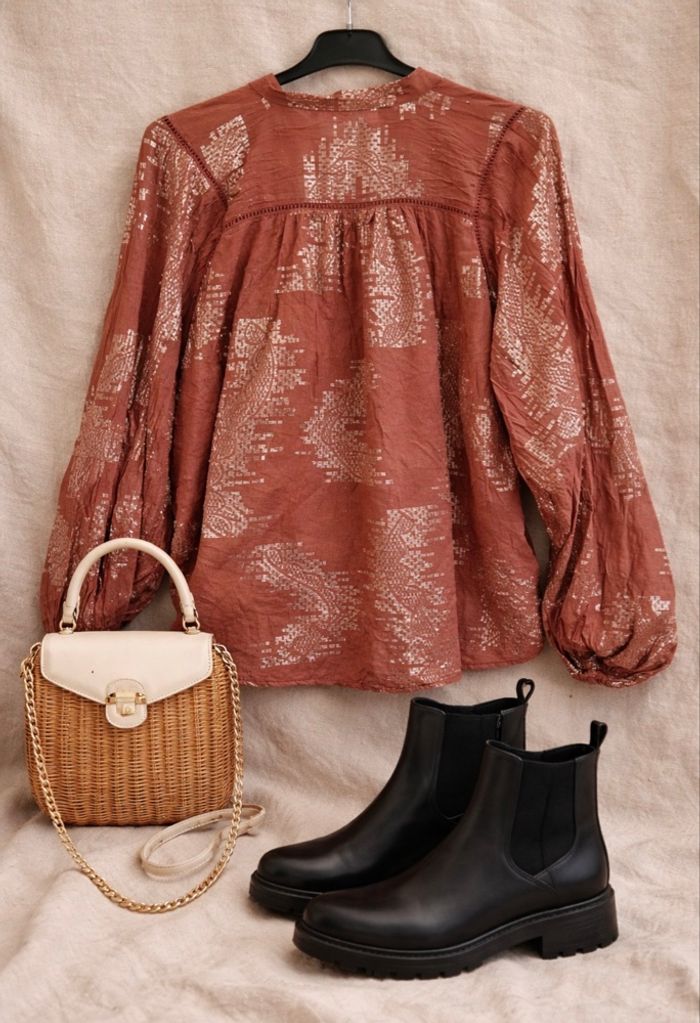 blouse imprimée couleur vieux rose et doré taille 40 marque Promod jamais porté étiquette d'achat manquante