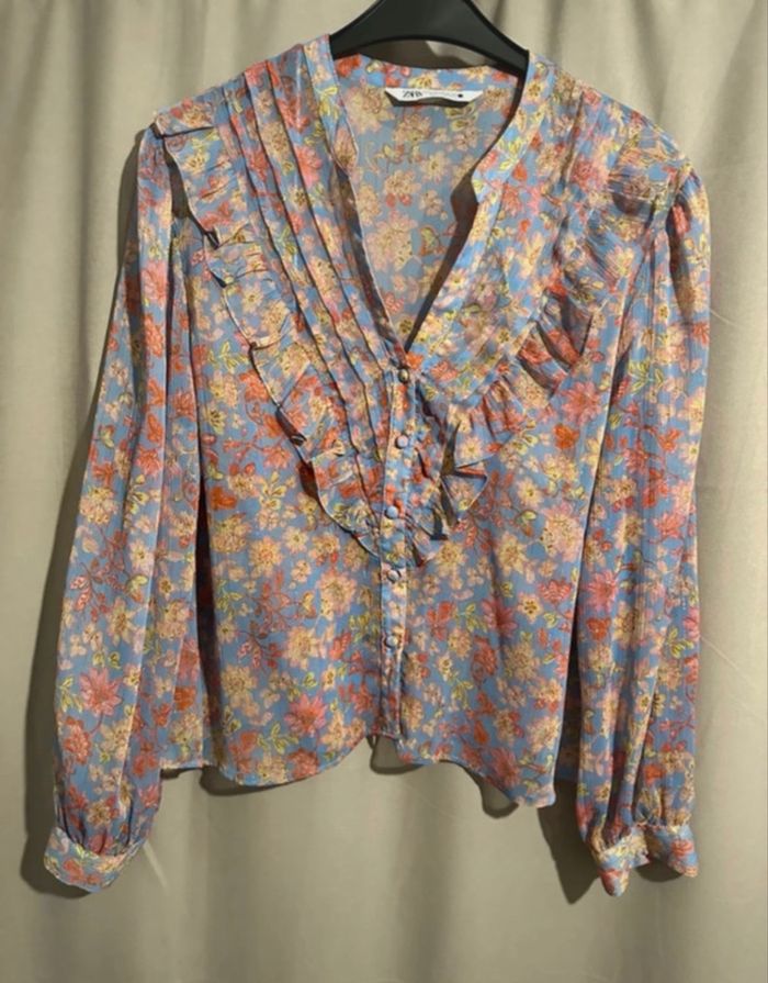 Chemise, imprimé floral Marque Zara Taille XL La chemise est en parfait état, sauf au niveau de la manchons, le petit laçage pour fermer, le bouton est décousu, mais qui se voit à peine Prix d’achat, 29,95 €