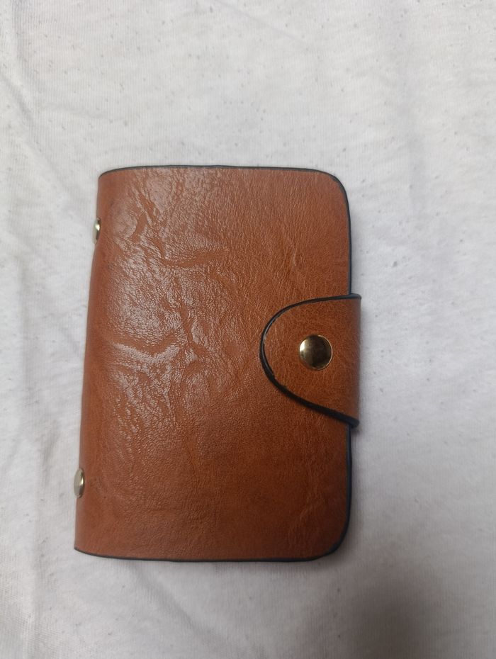Porte-cartes en simili cuir marron avec bouton pression - photo numéro 1