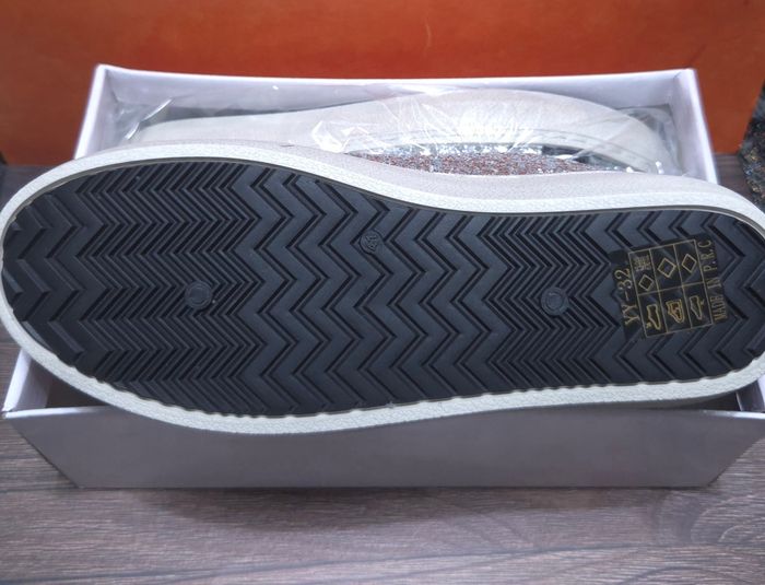 Baskets Femme Paillettes Argentées & Étoile Noire – Look Chic & Tendance – Neuves ​Donnez de l'éclat à votre style avec ces baskets étincelantes ! Un modèle incontournable qui combine le confort d'une basket et le chic des paillettes, inspiré des tendances actuelles. ​Design Scintillant : Entièrement recouvertes de paillettes argentées pour un effet brillant garanti. ​Détail Mode : Grande étoile noire contrastante sur le côté et empiècement noir au talon pour un look graphique. ​Confort : Semelle blanche épaisse et antidérapante, idéale pour une marche confortable toute la journée. ​Style Polyvalent : Se marie parfaitement avec un jean slim, un pantalon noir ou même une jupe pour un look décalé. ​État Irréprochable : Article neuf ​Pointure : 41 ​Prix : 27,90 €. ​Expédition : Envoi rapide et colis protégé (expédition sous 24h/48h).