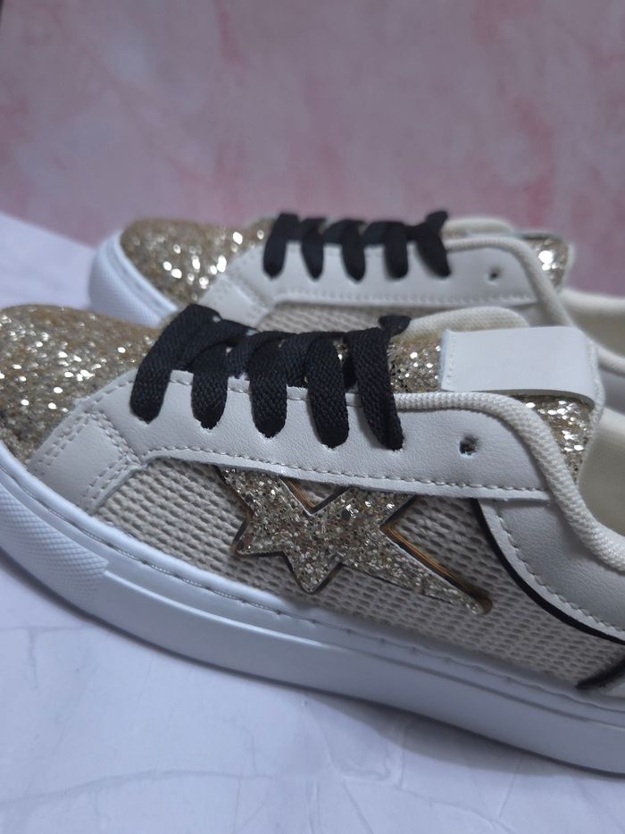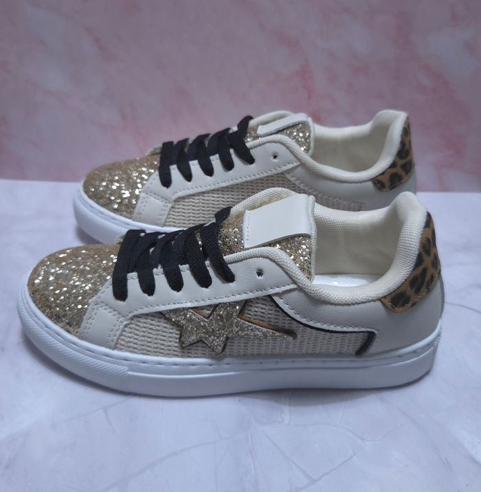 Baskets Femme Or & Léopard - Style Étoile Pailletée - Neuves Taille 36 - photo numéro 1