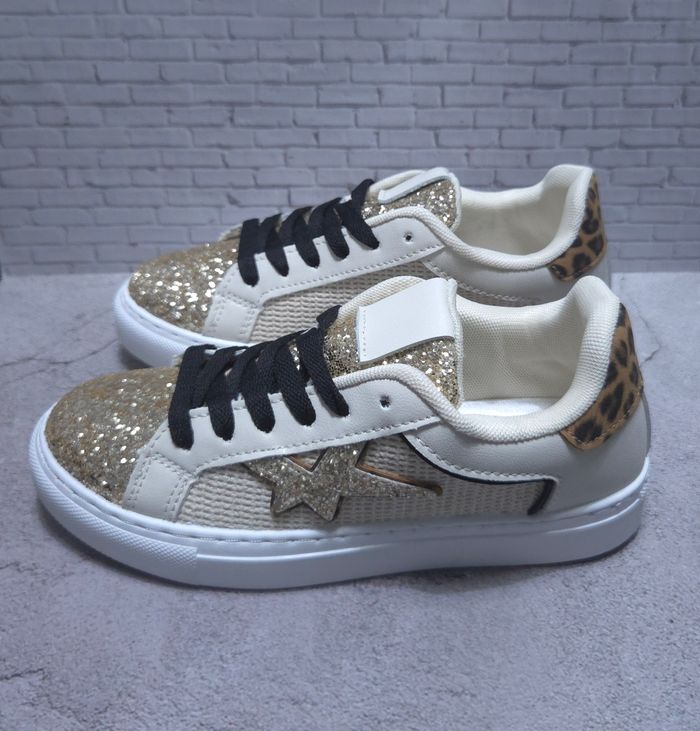 Baskets Femme Or & Léopard - Style Étoile Pailletée - Neuves Taille 39 - photo numéro 1
