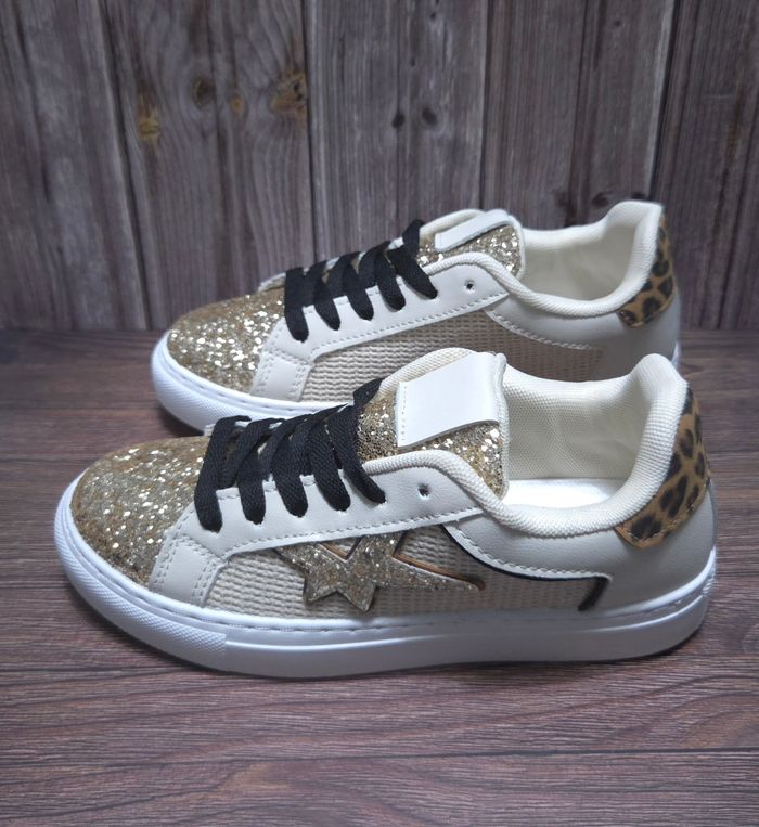 Baskets Femme Or & Léopard - Style Étoile Pailletée - Neuves Taille 41 - photo numéro 1