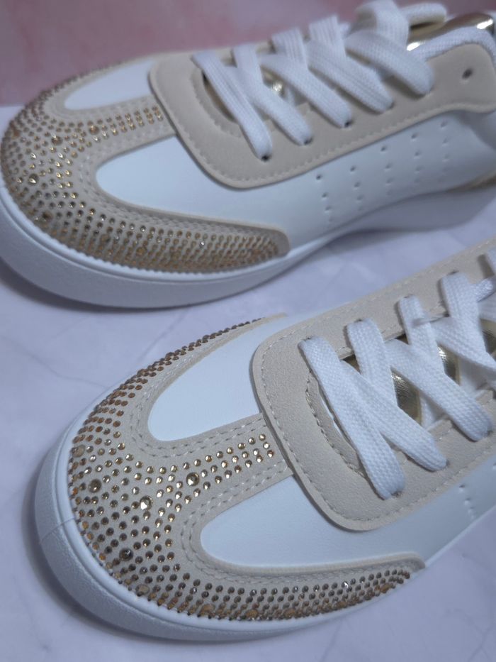 Baskets Femme Blanches & Or - Détails Strass Chic - Neuves Taille 36