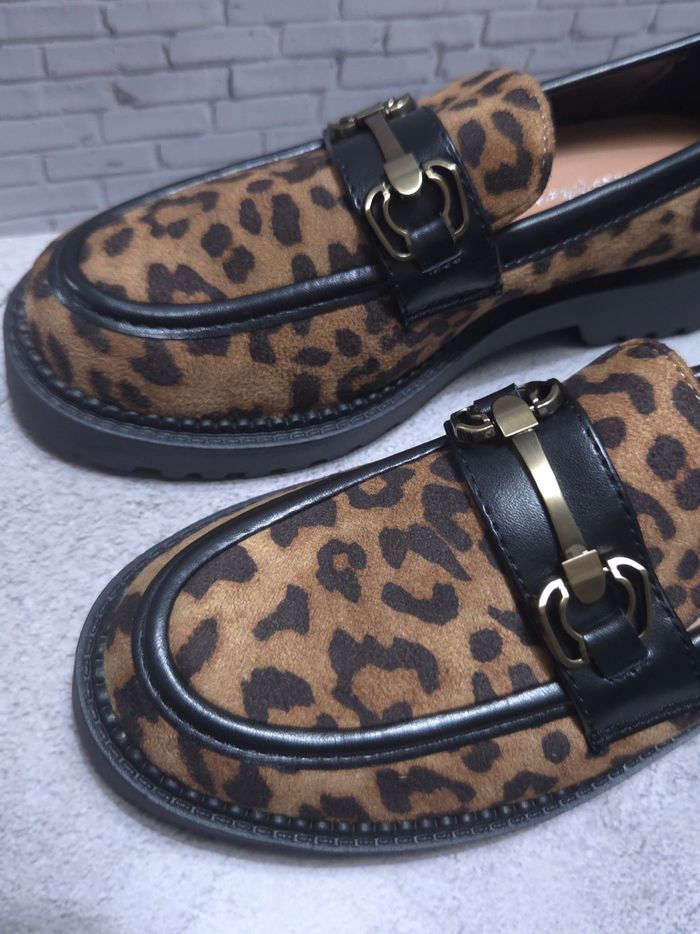 Mocassins Femme Imprimé Léopard – Détails Mors Doré – Style Chic & City – Neufs ​Adoptez la tendance "animal print" avec ces magnifiques mocassins. Un modèle élégant et de caractère, idéal pour rehausser une tenue de bureau ou un look jean/chemisier. ​Imprimé Tendance : Revêtement effet daim avec motif léopard ultra réaliste, la grande tendance de la saison. ​ ​Confort & Qualité : Semelle noire robuste et crantée offrant une excellente adhérence et une allure moderne. ​Finition Premium : Bordures en simili-cuir noir qui soulignent parfaitement la ligne de la chaussure. ​État : Article neuf. ​ ​Pointure : 38 ​Taillent normalement. ​Expédition : Envoi très rapide (sous 24h/48h) dans un emballage soigné.
