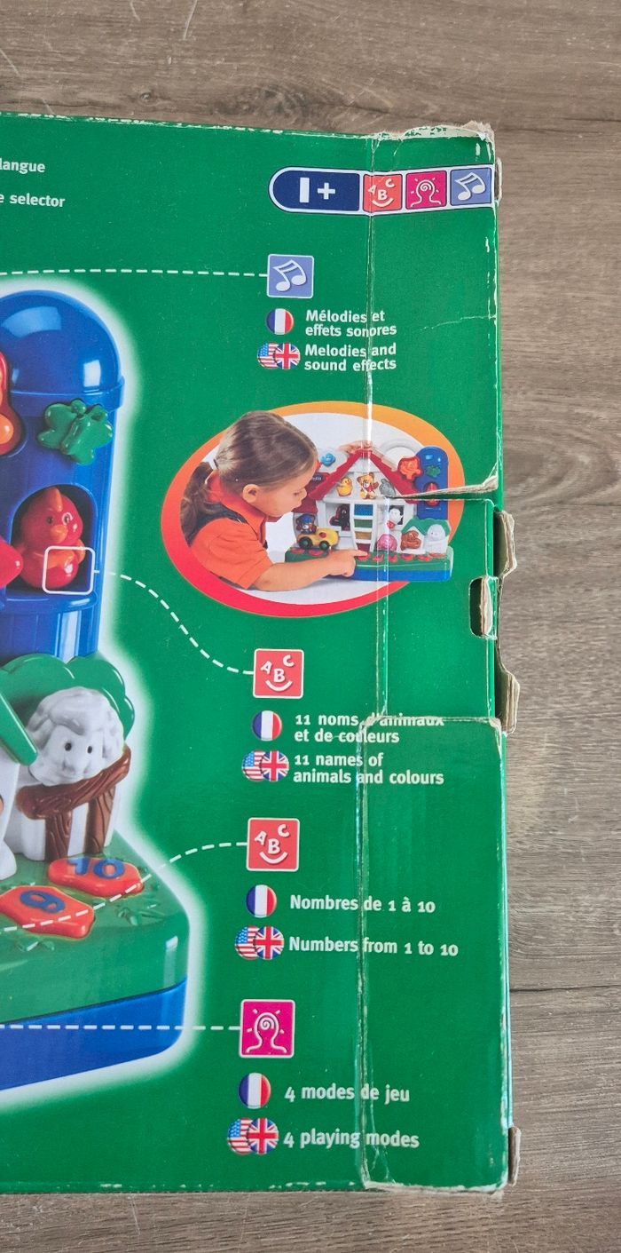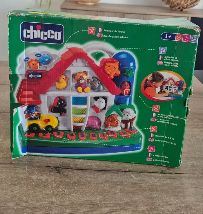 Ma ferme éducative bilingue Apprendre les animaux, les couleurs, les chiffres, musique et effets sonores Chicco Neuf dans son emballage (boîte abîmée, voir photos)
