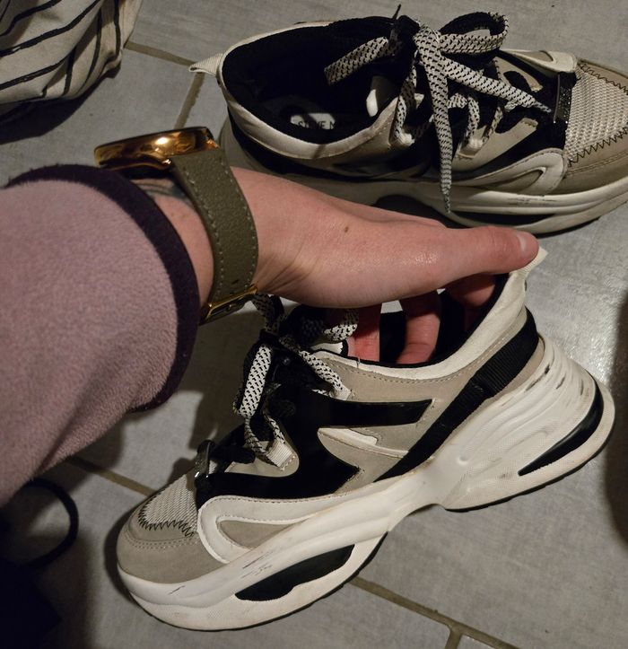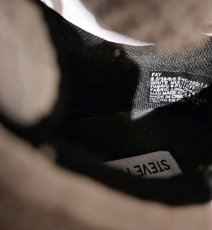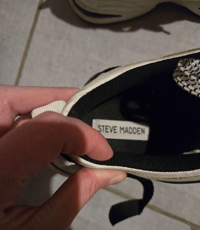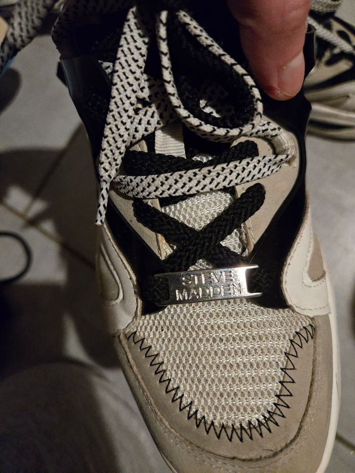 Je vends cette paire de baskets Steve Madden pour femme. - Type de produit : Baskets - Univers : Femme - Marque : Steve Madden - Pointure : 39,5 - Couleur : Beige / Camel et noires - Matière : Textile et synthétique - Fermeture : Lacets doubles N'hésitez pas à me contacter pour plus d'informations ou de photos. 25€ Envoi très soigné possible ou remise en mains propres sur Marseille 13005 souhaitée