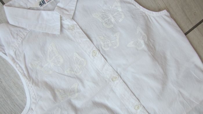 Chemisier sans manche. Broderie papillons. Taille 10/11 ans (146 cm). Coloris blanc. Neuf. H&M.