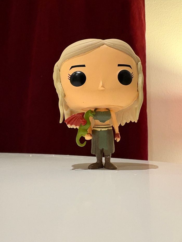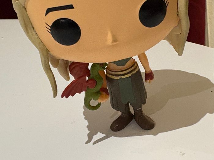 🖼️Types d’article : Figurine Daenerys Targaryen (Game Of Thrones) ®️ Marque : Funko Pop 🏷️Matière : Vinyle 📏Dimensions : - Hauteur 9,5cm 🔍État : Très bon état 📋Description Détaillée : Plonge dans l’univers épique de Game of Thrones avec cette figurine Funko Pop en vinyle de Daenerys Targaryen, la Mère des Dragons 🔥🐲 Représentée avec son look iconique et son dragon, cette figurine est un incontournable pour les fans de la série, les collectionneurs Funko Pop ou pour une belle pièce déco geek. Idéale pour compléter une collection Game of Thrones, offrir un cadeau original, ou exposer fièrement sur une étagère 🖤✨ ❤️‍🩹Défauts : Aucun