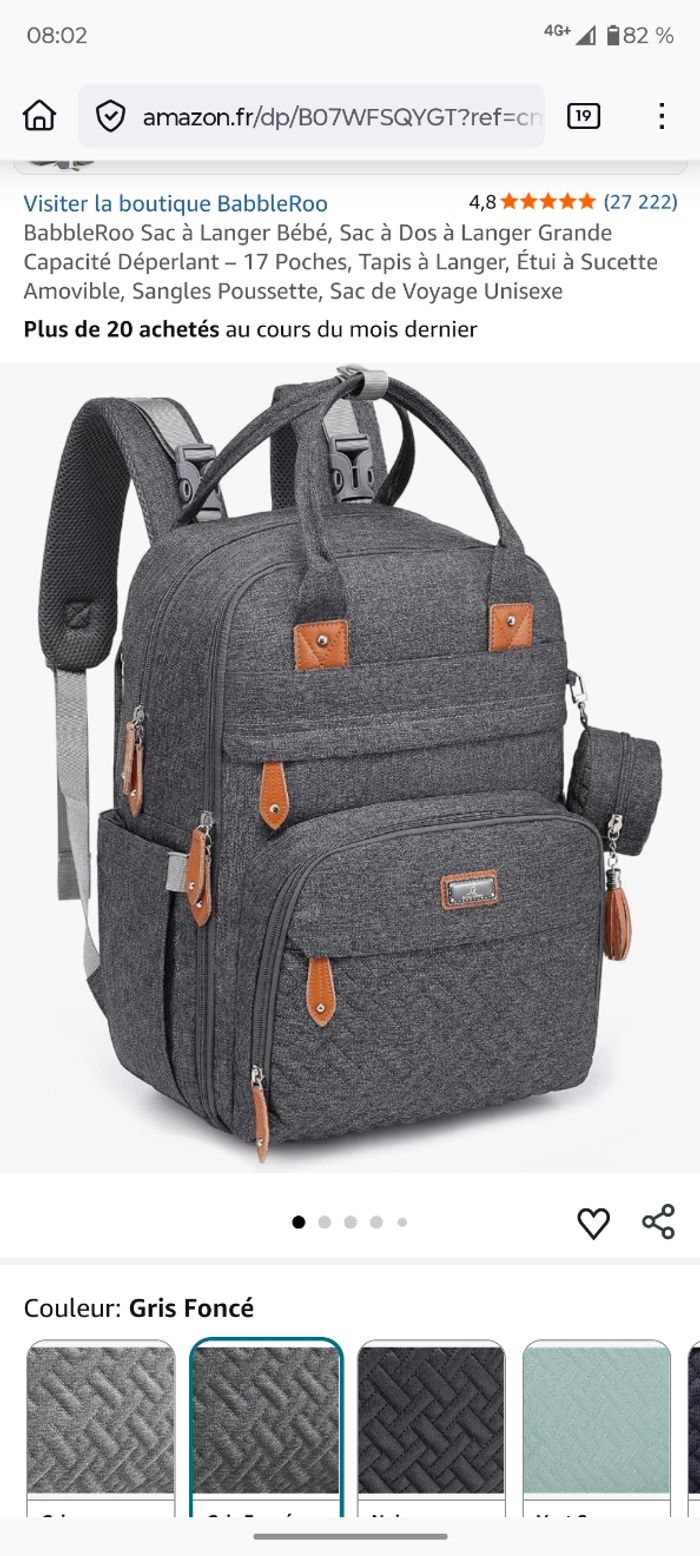 Je vends ce sac à dos à langer de la marque BabbleRoo, avec une grande capacité de rangement grâce à ses 17 poches. Dimensions sur photo jointe. Il est en parfait état comme neuf. N'hésitez pas à me contacter pour plus d'informations !