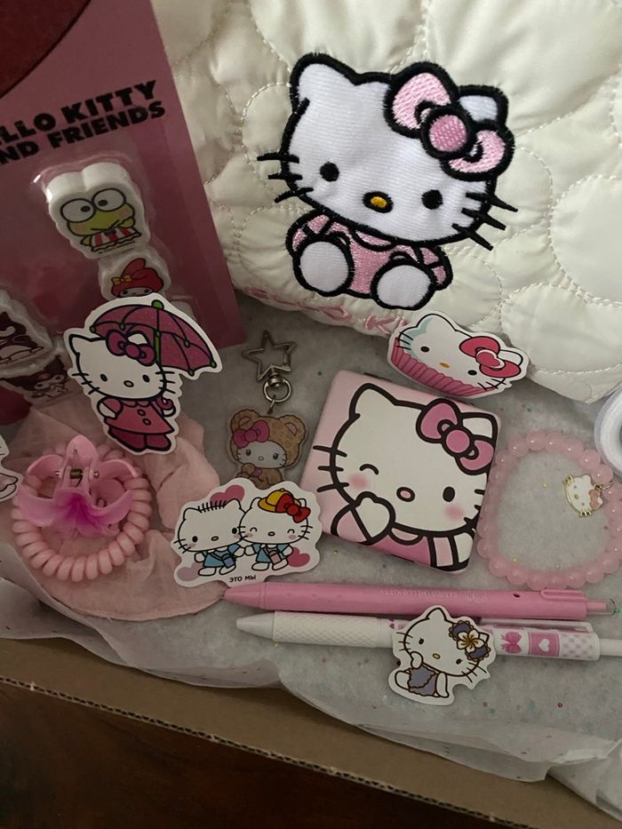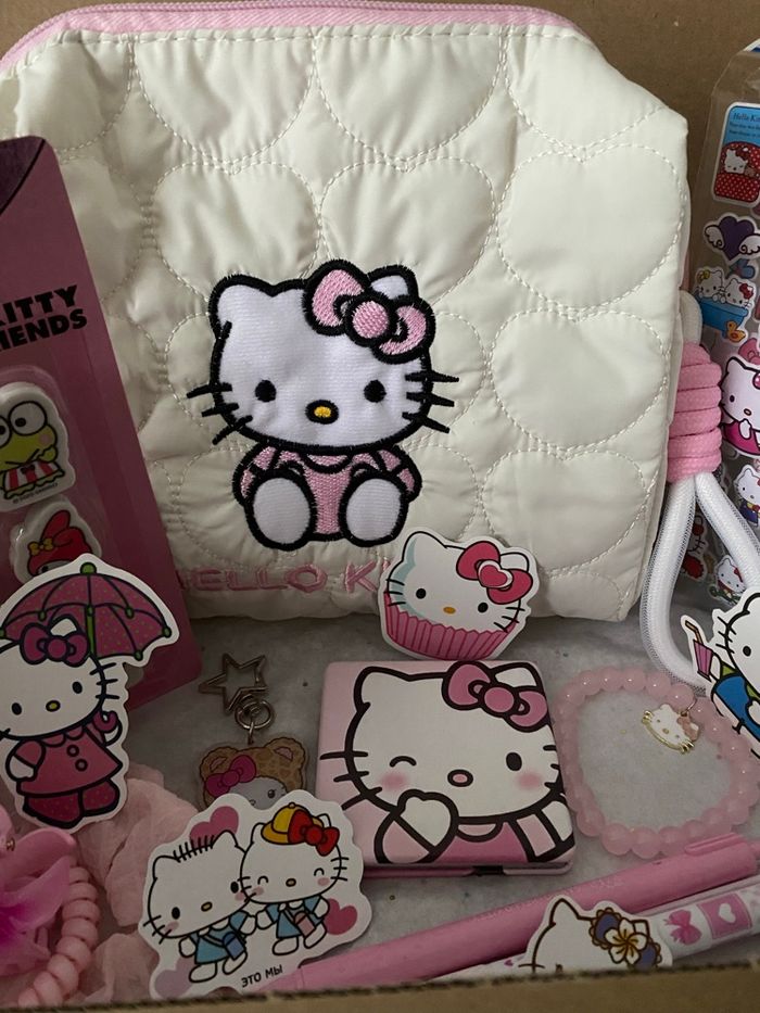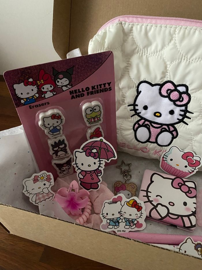 Box cadeaux H. Kitty prête à offrir. La box comprend : - une trousse de toilette - un miroir de poche - lot de gommes - planches stickers - un bracelet - un porte-clés - 2 stylos - accessoires cheveux Articles neufs. Envoi rapide. #hellokitty #boxcadeauxprêtesàoffrir #scoop #sanrio