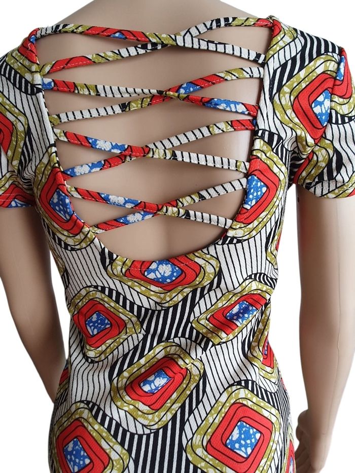 Robe Ajustée à imprimé Géométrique- Dos nu Croisé Original - photo numéro 1