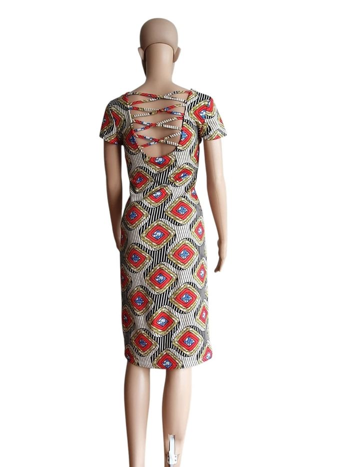 Robe Ajustée à imprimé Géométrique- Dos nu Croisé Original - photo numéro 5
