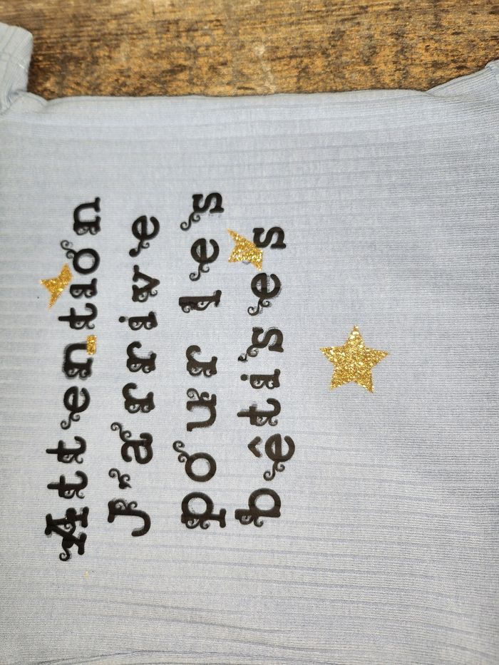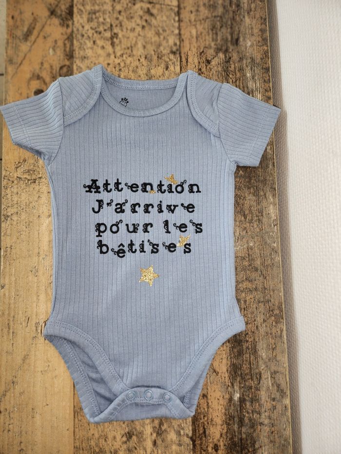 Body bleu côtelé personnalisé "Attention J'arrive pour les bêtises"  - photo numéro 4