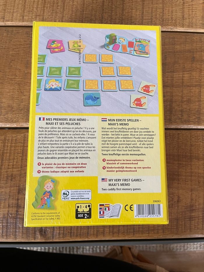 Neuf Sous blister Jeu de mémoire pour 1 à 4 enfants, avec une variante coopérative, accessible des 2 ans. Dans Mémo Maxi et ses peluches sauras-tu retrouver tous les animaux en peluche par paire avant que Maxi ne se couche ?