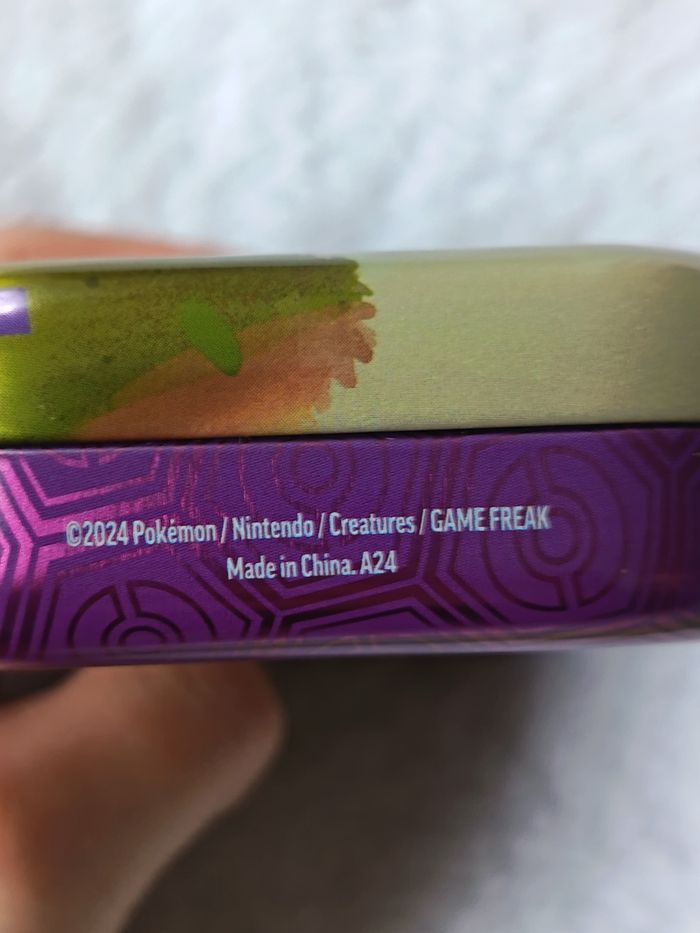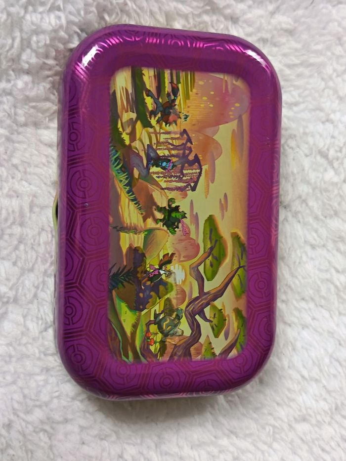 État : Très bon état Dimensions : Environ 12 x 8 cm Superbe Mini Tin Pokémon à l'effigie d'Okidogi (Félicanis), issue de la collection récente Écarlate et Violet : Destinées de Paldea (2024). Détails : Boîte en métal avec relief (embossage) sur le couvercle. Design : Illustration colorée représentant Okidogi. Au dos, on retrouve l'illustration complète avec les autres Pokémon de la bande (Fezandipiti, Munkidori...). Usage : Parfaite pour ranger vos cartes, vos accessoires de jeu (dés, marqueurs) ou pour compléter votre collection de boîtes. Note : La boîte est vendue VIDE (sans boosters, sans carte scellée). Envoi le mardi et le vendredi #pokemon #pokemoncards #minitin #destineesdepaldea #paldeanfates #okidogi #felicanis #rangementpokemon #collectionpokemon #nintendo