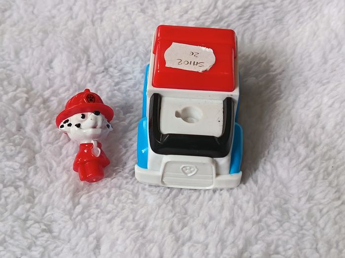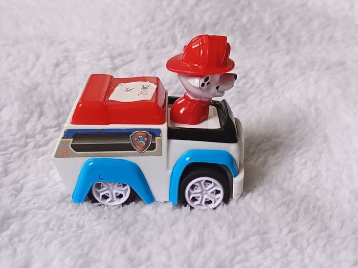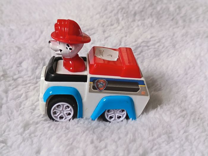 Vends cette petite figurine amovible de Marshall (Marcus), le célèbre chien pompier dalmatien de la Pat' Patrouille (Paw Patrol), accompagnée de son véhicule. État : Bon état général (quelques traces d'usure légère visibles sur les photos). Dimensions : Environ 7 cm de long. Matière : Plastique robuste. Particularité : Le personnage peut être retiré du véhicule pour jouer séparément. Idéal pour compléter une collection, offrir en petit cadeau ou pour s'amuser partout grâce à son format de poche ! #skms62141_patpatrouille #PawPatrol #PatPatrouille #Marshall #Marcus #JouetEnfant #CamionPompier #Figurine #JouetPlastique