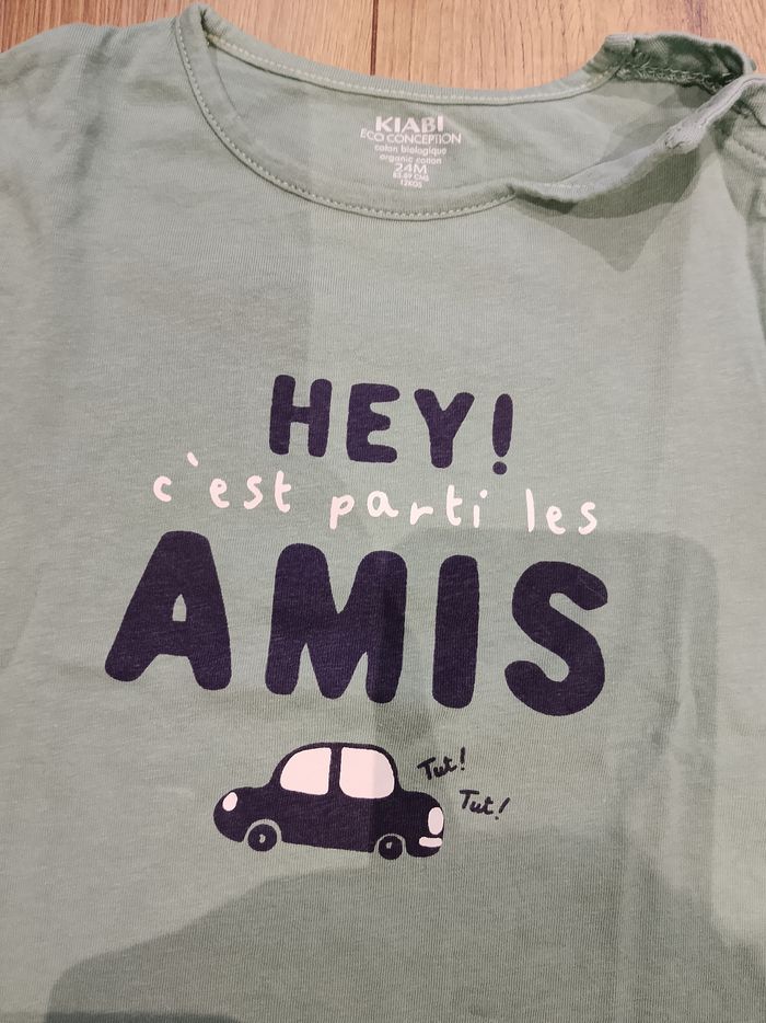 T-shirt manches longues pour bébé garçon 24 mois kiabi Très bon état, sans tache ni trou. Maison non fumeur mais avec animaux.