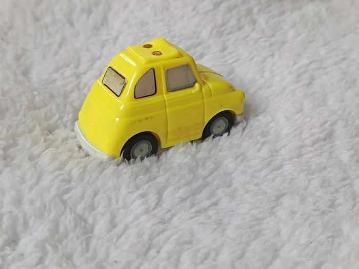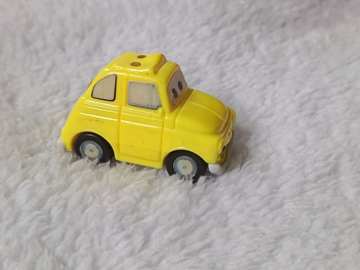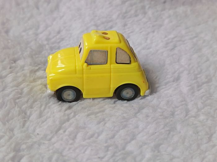 Personnage : Luigi (la Fiat 500 jaune) du film d'animation Cars de Disney Pixar. 🔍 État : Bon état général (voir photos pour les détails, légères marques d'usage possibles sur le plastique). 📏 Dimensions : Environ 6 cm de long. ✨ Détails : * Matière : Plastique. Édition promotionnelle Nestlé (marquage authentique sous le châssis). Idéal pour compléter une collection Cars ou pour un jeune enfant (mention 18M+ sous le jouet). Envoi le mardi et le vendredi #skms62141_cars #DisneyPixar #Cars #Luigi #Nestle #JouetCars #FigurineCars #Disney #Fiat500 #CollectionDisney #JouetEnfant