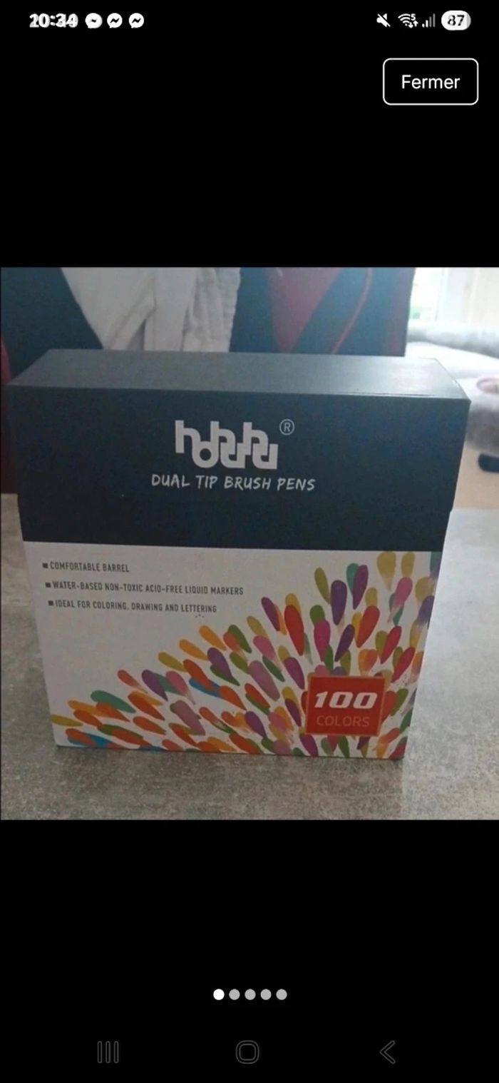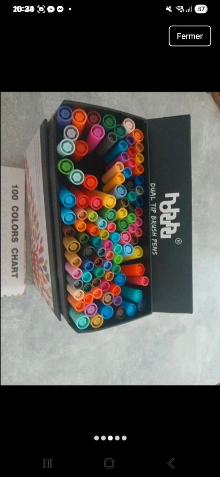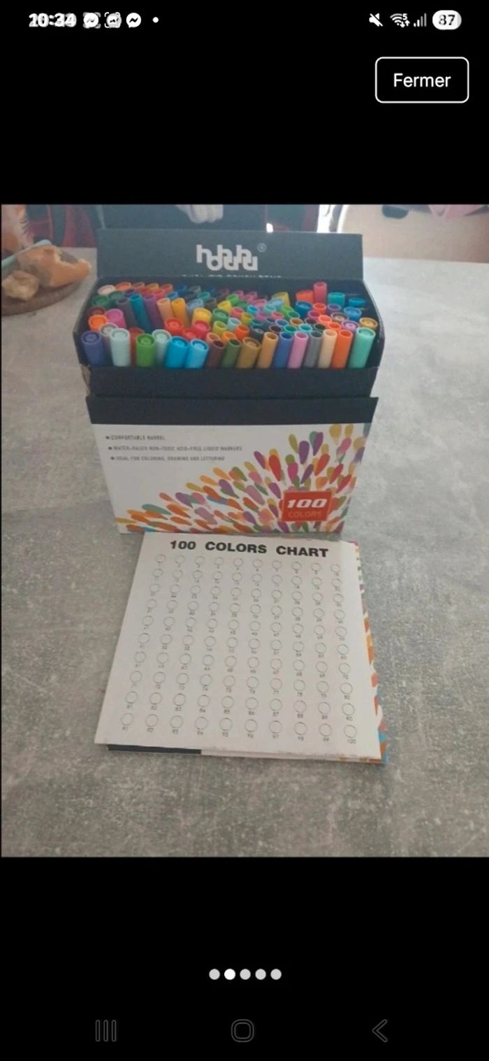 Vend boites de crayon feutres a eau doubles pointes tres peu utiliser, avec le nuancier et un petit cahier de pages blanches non utiliser