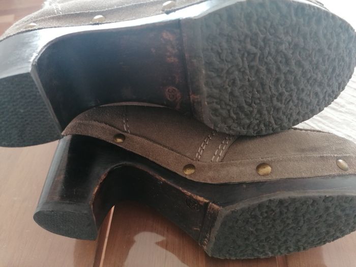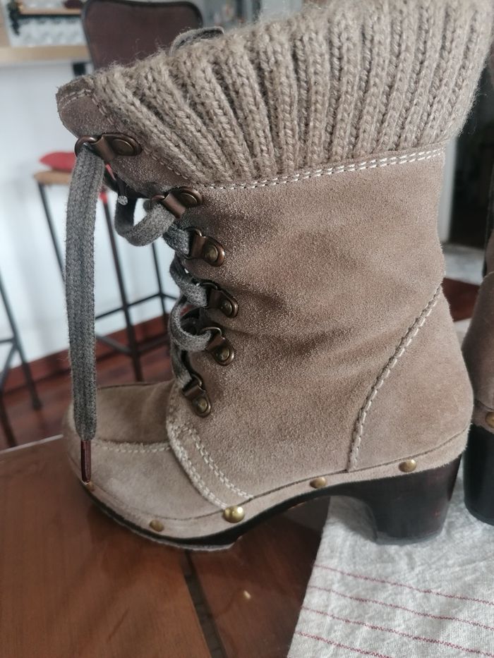 Originales bottines lacets avec tour en laine… bords semelles rehaussé de petits clous… Petit talons … semelles refaites Taille 35. À saisir…