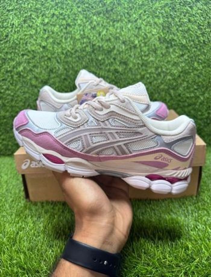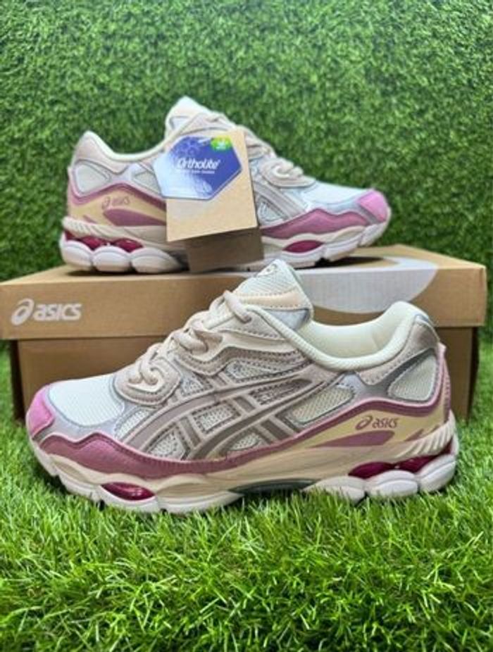 Baskets ASICS originales pour femme, taille 37,en excellent état. Coloris blanc, beige et rose, au design moderne et soigné. Dotées d’une semelle Ortholite, elles assurent un excellent confort, un bon amorti et une bonne respirabilité, idéales pour un usage quotidien. Chaussures légères, résistantes et agréables à porter. 📌 Information complémentaire : l’étiquette bleue visible sur les photos est simplement posée sur la chaussure et ne fait pas partie de la paire.