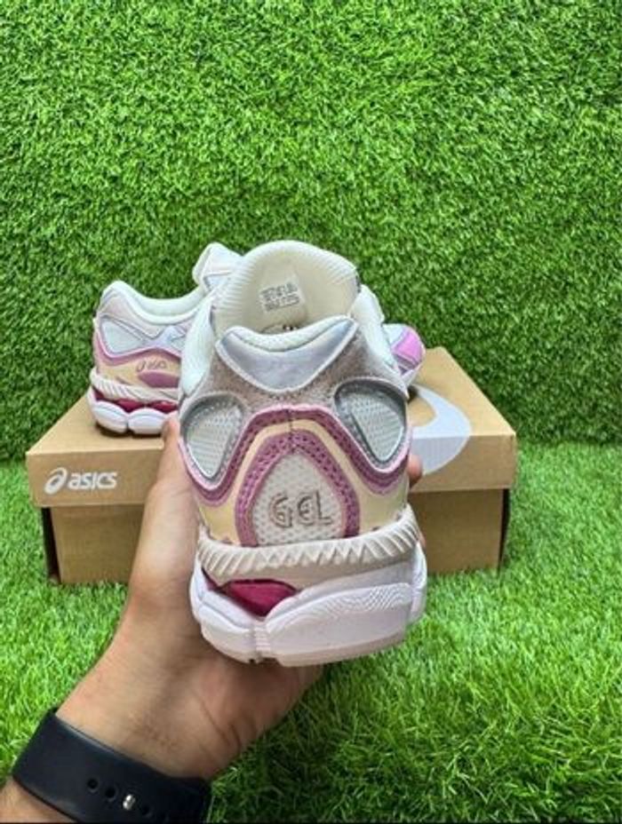 Baskets ASICS originales pour femme, taille 36,en excellent état. Coloris blanc, beige et rose, au design moderne et soigné. Dotées d’une semelle Ortholite, elles assurent un excellent confort, un bon amorti et une bonne respirabilité, idéales pour un usage quotidien. Chaussures légères, résistantes et agréables à porter. 📌 Information complémentaire : l’étiquette bleue visible sur les photos est simplement posée sur la chaussure et ne fait pas partie de la paire.