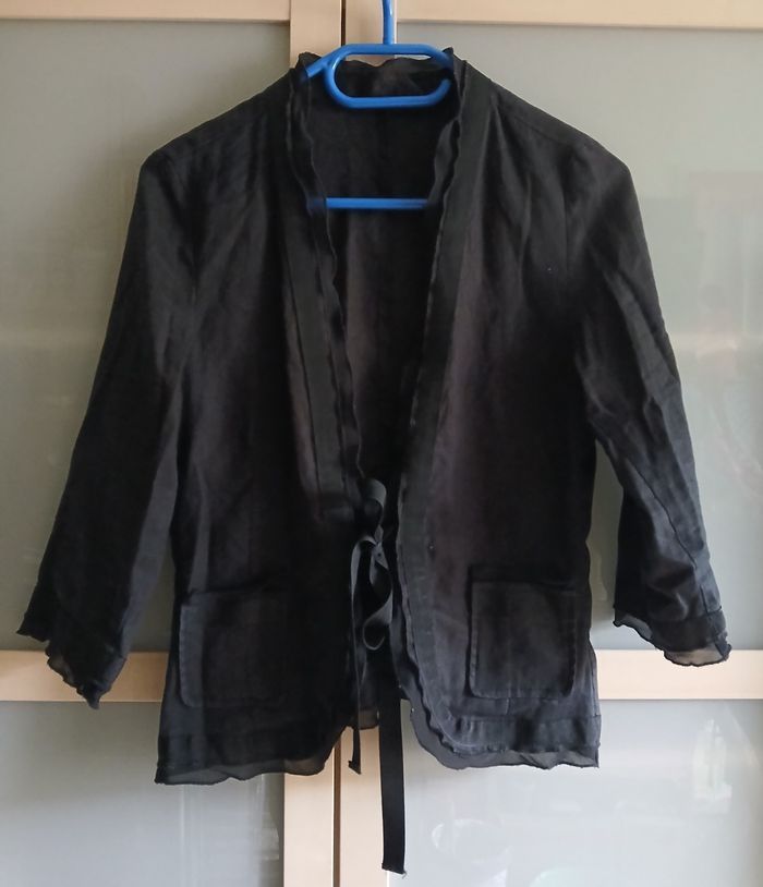Marque autre ton Taille 40 sur etiquette convient aussi à 38 38/40 Finitions passementerie raffinée 2 poches devant Fermeture ruban Se porte avec pantalon, jupe ou robe Portée 2 fois