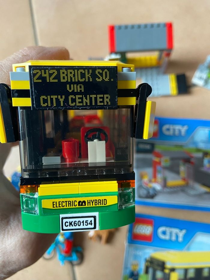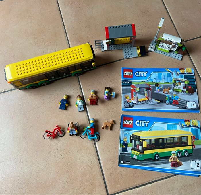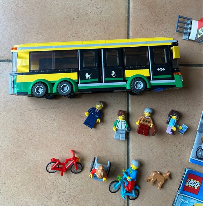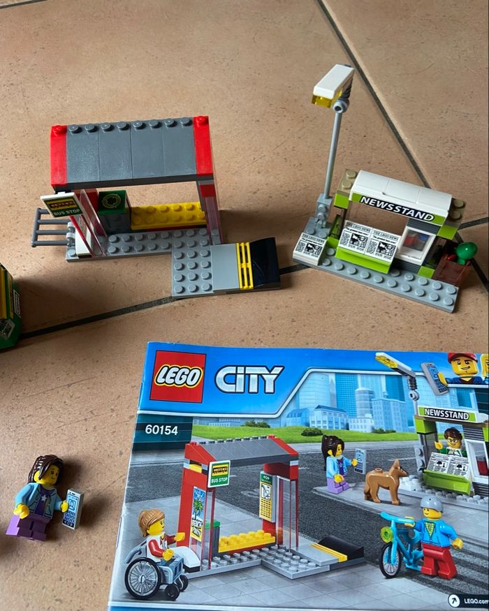 Lego City 60154 : La gare routière Complet avec ses deux livrets de montage, un des deux est abîmé mais le lego lui est en très bon état général Vous achetez ce que vous voyez sur les photos