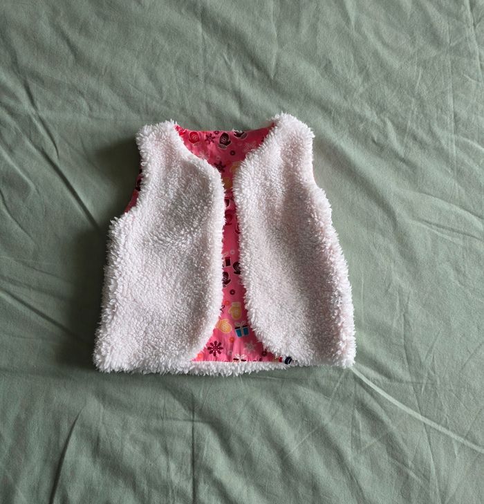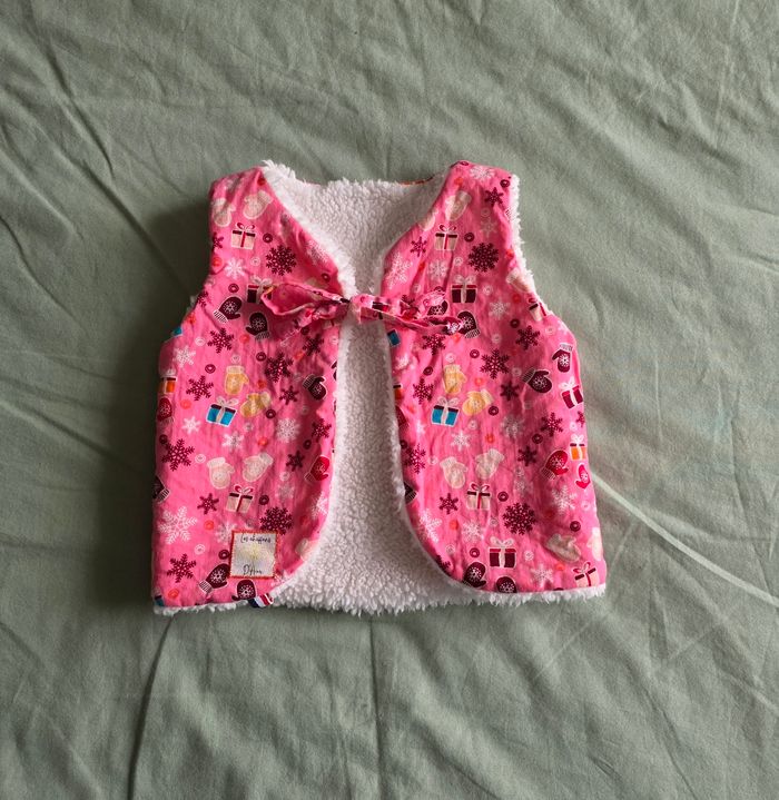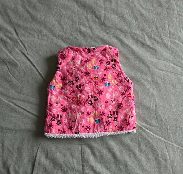 ​✨ ÉTAT : Très bon état. Les articles ont été soigneusement entretenus : le blanc de la robe est éclatant, les fils argentés sont intacts et la partie "moumoute" du gilet est restée bien douce. Aucune tache ni signe d'usure. ​📏 TAILLE & COUPE : 3 mois (correspond à du 56-62 cm). ​Robe Kiabi : Coupe évasée avec boutonnage intégral au dos pour un habillage facile. ​Gilet réversible : Sans manches, il se ferme par un petit lien à nouer sur le devant. ​🌿 MATIÈRE : ​Robe en 100% Coton texturé avec quadrillage en fil lurex argenté et broderie "hello". Doublure intérieure confortable. ​Gilet fait main ("Les chiffons d'Aur") avec une face en coton à motifs festifs (cadeaux, flocons, moufles) et une face en textile imitation fourrure blanche ultra douillette. ​📦 LIVRAISON : Envoi via Mondial Relay (lockers), Shop2Shop ou Chronopost (point relais physique). ​🎁 Réductions sur les lots activées ! C'est le moment de compléter votre trousseau de naissance.