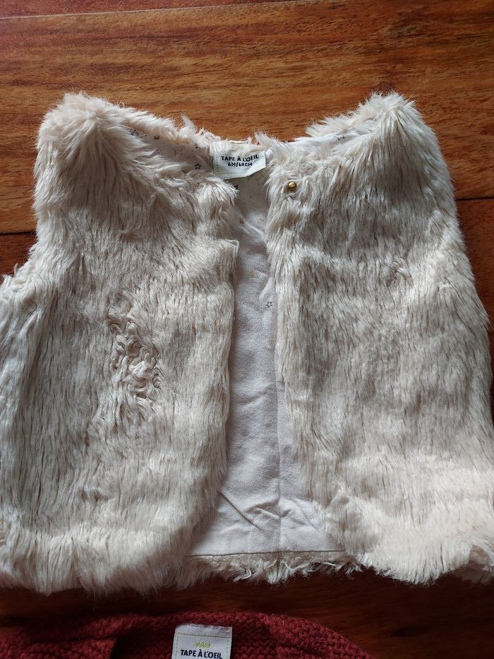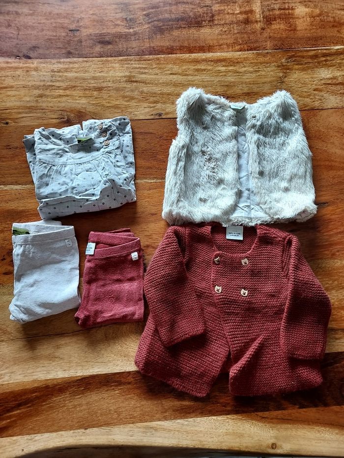 Tenue 6 mois 68cm Tape à l'oeil: - 1 tee shirt manches longues -2 leggings -1 gilet sans manche -1 gilet en coton et laine