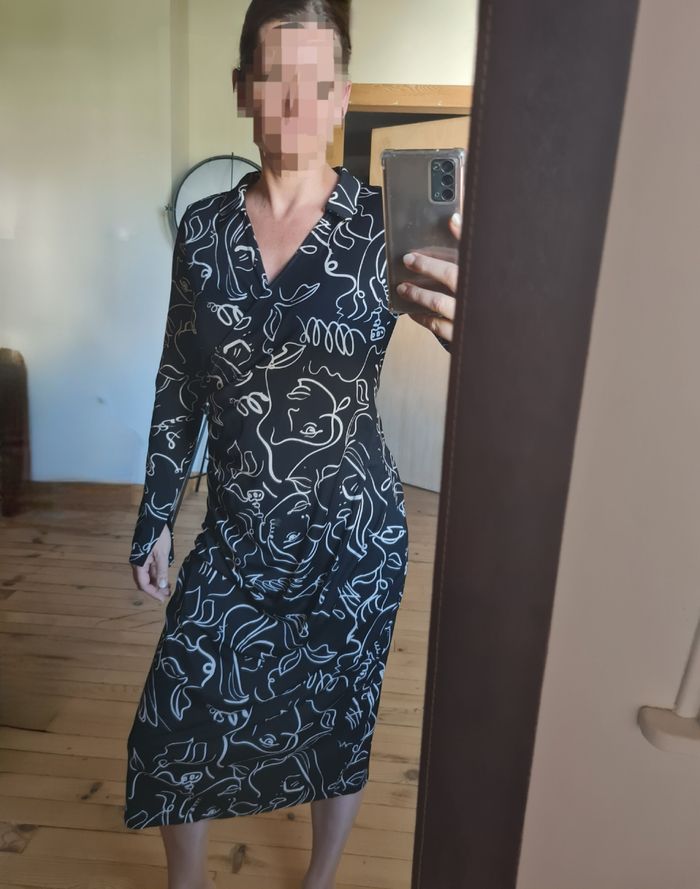 Robe midi noire et blanche neuve jamais portée. Coupe fluide et féminine. Tissu agréable à porter, ne colle pas au corps. Idéale pour le quotidien, peut se porter dès le début de grossesse jusqu'au 9 mois grâce à son tissu extensible. ⚡ Réduction automatique dès 2 articles achetés – découvrez mes autres annonces ! 🚚✨ Envoi rapide et soigné. robelongue saintvalentin cafeaufemme robe midi, robe fluide, robe noire, robe imprimée