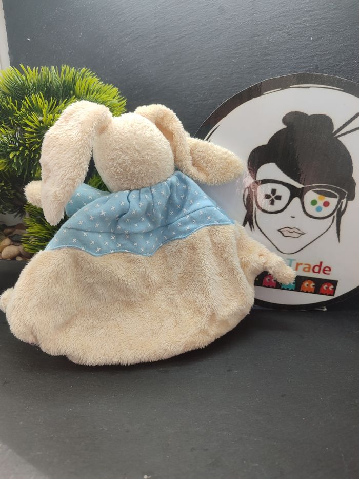 DD2581 Doudou plat lapin blanc creme pull bleu croix pommette Grelot Beige Ours  - photo numéro 2