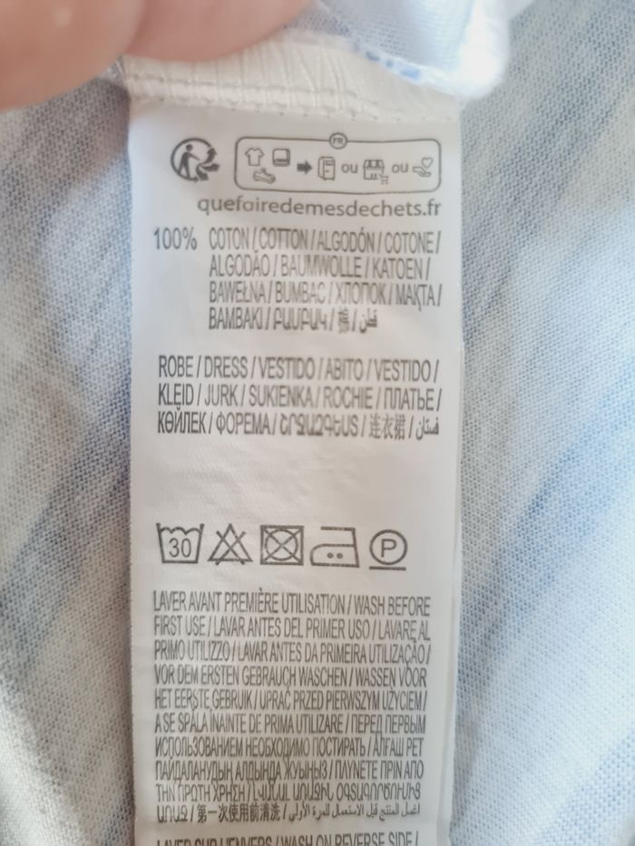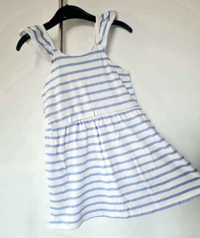 Adorable petite robe blanche à rayures bleu ciel. Neuve sans étiquette, jamais portée. 100% coton, douce et légère, parfaite pour le printemps et l’été. 📏 Longueur : 51 cm (du haut de la bretelle au bas) 🎀 Bretelles volantées et coupe confortable. ⚡ Réduction automatique dès 2 articles achetés – découvrez mes autres annonces ! 🚚✨ Envoi rapide et soigné.