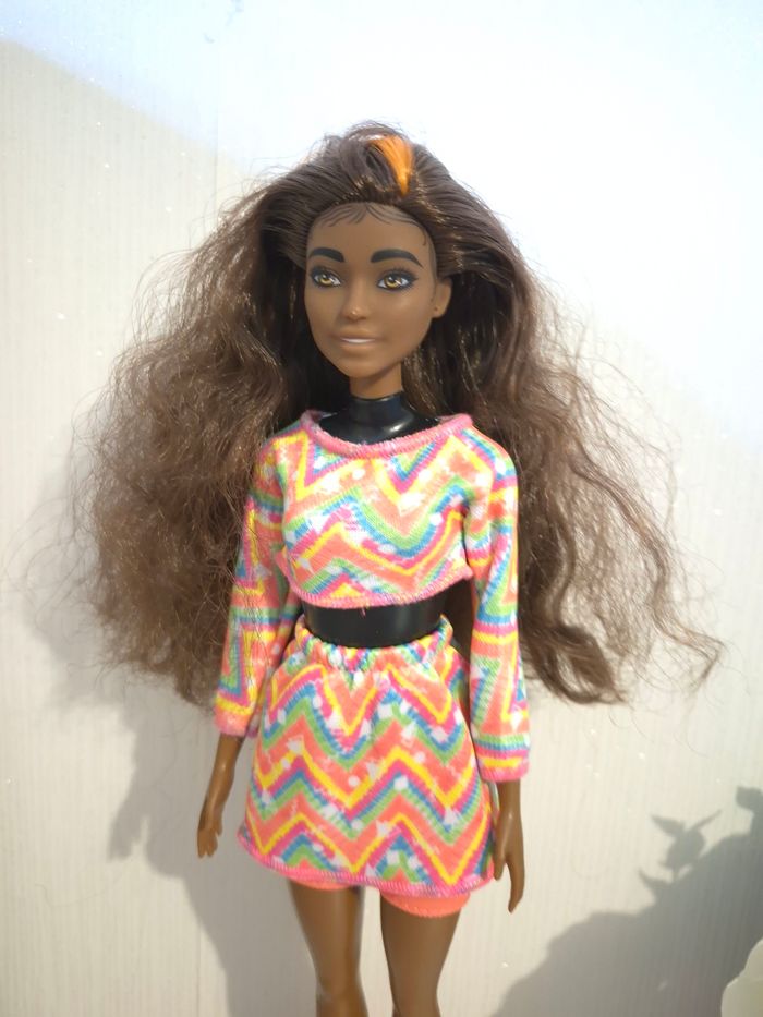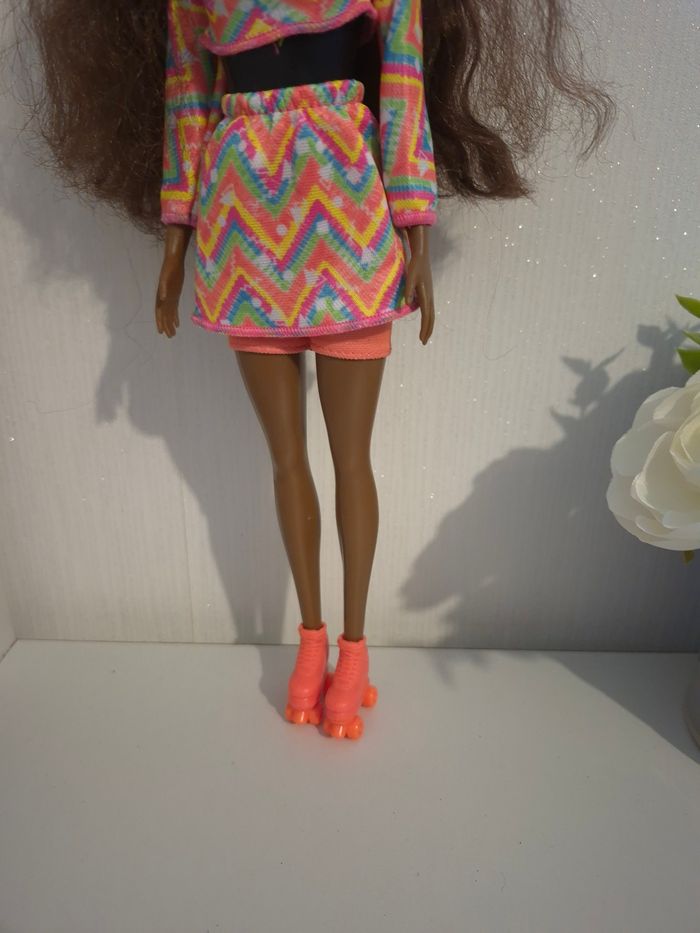 đŸ›Œ jolie poupĂ©e Barbie Roller tenue pulticolore zig-zag 🌈