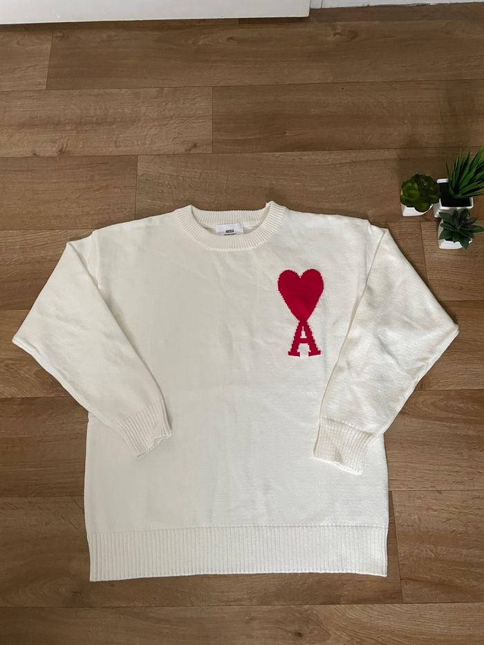 🤍 Pull AMI blanc, taille S ❤️ Logo cœur rouge sur la poitrine ✨ Bonne état et confortable 📦 Expédition en 24/48h 💬N’hésitez pas à me contacter si vous avez besoin d’informations complémentaires