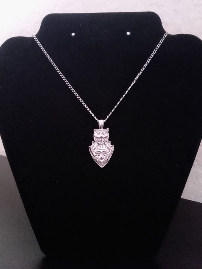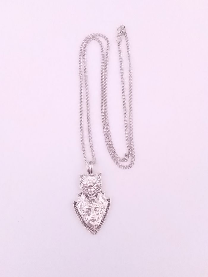 Chaîne + pendentif celtique. Pendentif : bouclier, motif : loup, aigle. (celtique, protection, spirituel, idéal cadeau) DESCRIPTIF : Couleur : argenté. Taille chaîne : 60 cm Diamètre pendentif : 3,4 cm L * 3,4 cm H Envoi rapide et soigné.