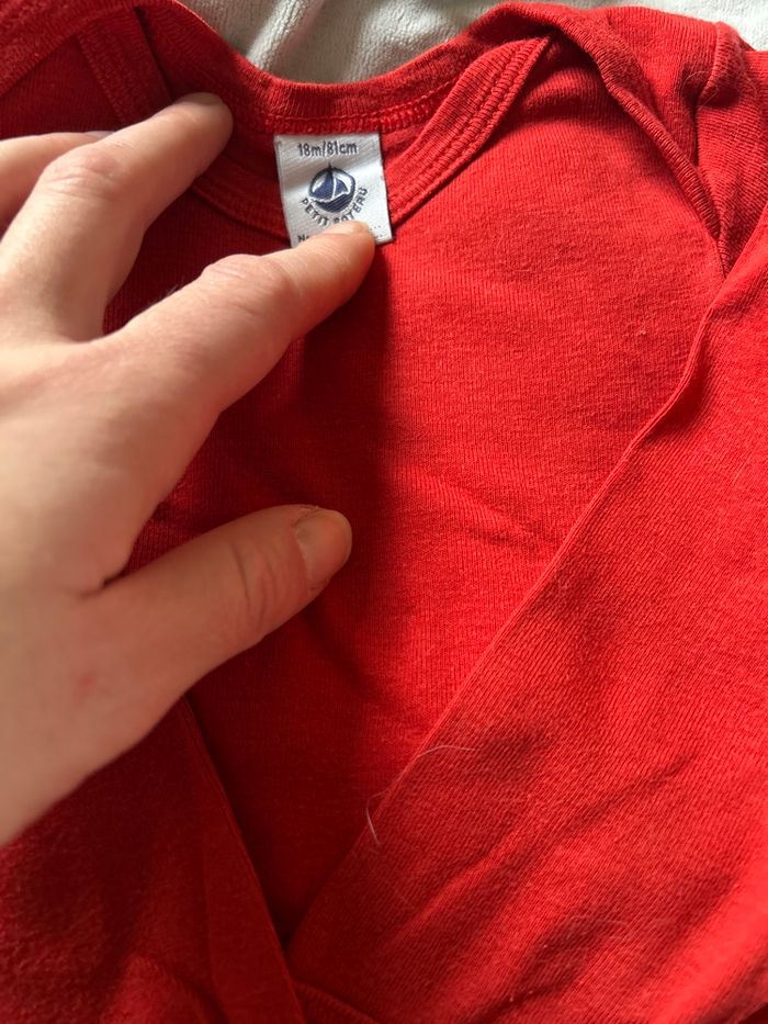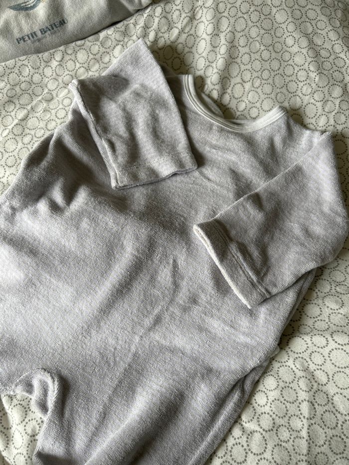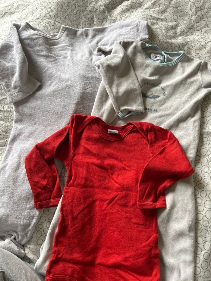 Lot petit bateau 18 mois 1 body manches longues rouge 1 pyjama velours gris et bleu turquoise 1 pyjama éponge à rayures Les couleurs sur photo ne rendent pas bien pour le dernier